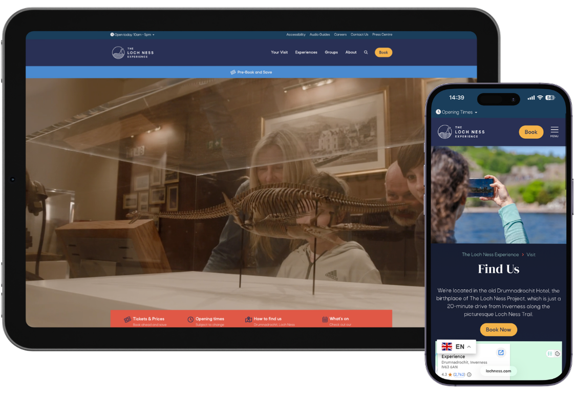 The Loch Ness Centre brings the story of the world's most famous loch to life in the Scottish Highlands, combining immersive exhibition experiences with the drama of the landscape itself. Visitors travel from across the globe to discover the legend - and their new LOOP website is built to capture that curiosity and convert it.